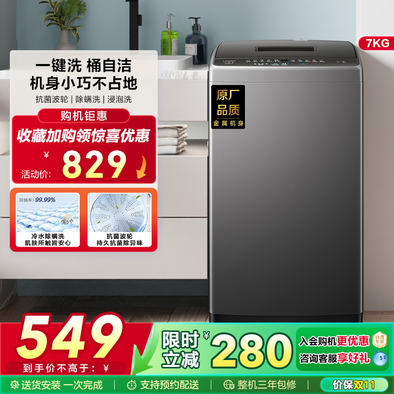 海尔出品统帅小型除菌螨波轮洗衣机7kg家用全自动租房M10浸泡洗