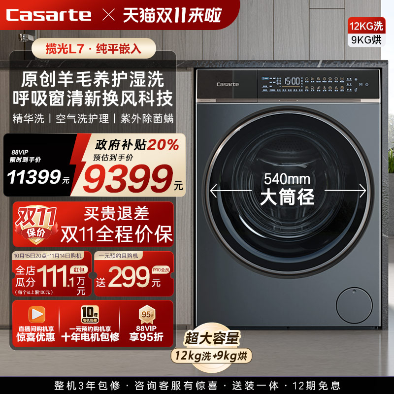 【卡萨帝揽光】超薄12kg大容量家用全自动滚筒洗烘一体洗衣机L7
