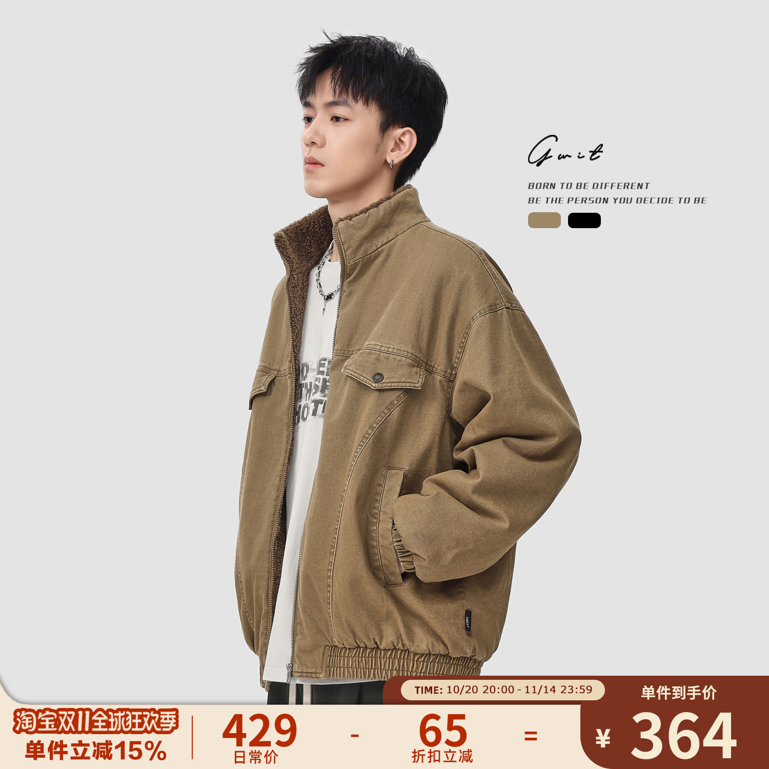 GWIT 美式复古Vintage加绒夹克冬季保暖棉服加厚羊羔毛工装外套男
