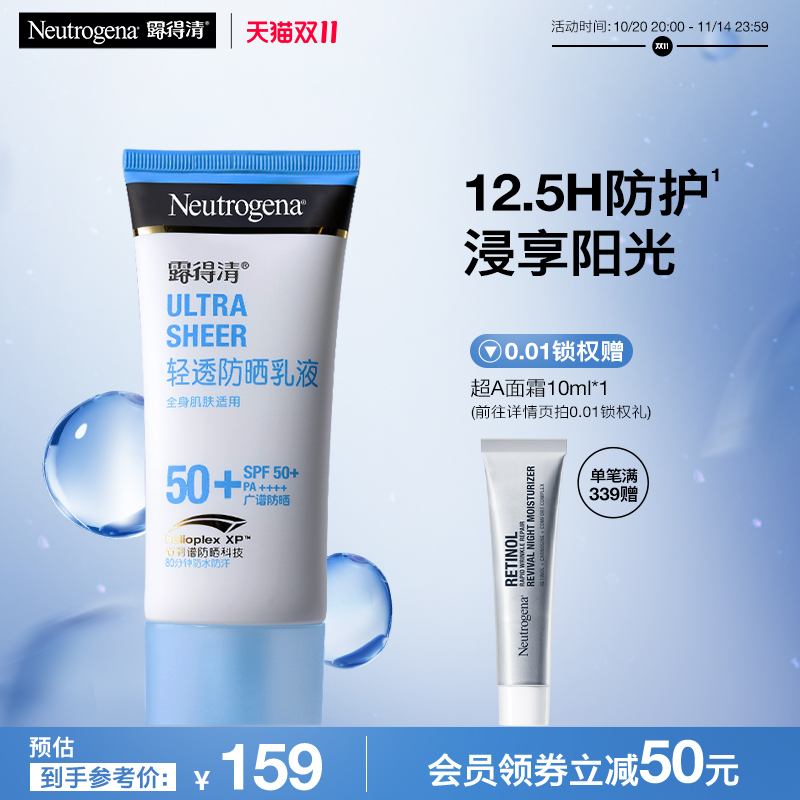 【双11现货】露得清轻透防晒霜隔离霜清爽面部防晒乳液SPF50+