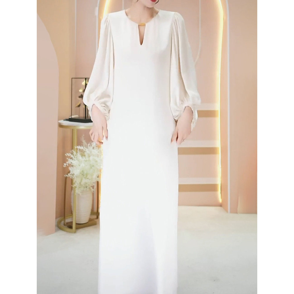 - 真丝长袖连衣裙