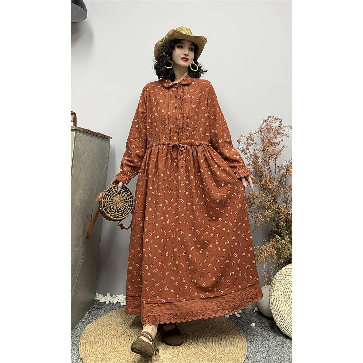 - 碎花连衣裙秋冬中长款