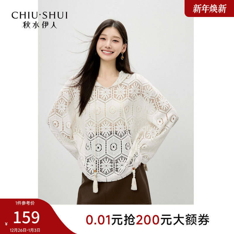 秋水伊人设计感蕾丝镂空罩衫2025秋冬新款女长袖宽松通勤外搭上衣