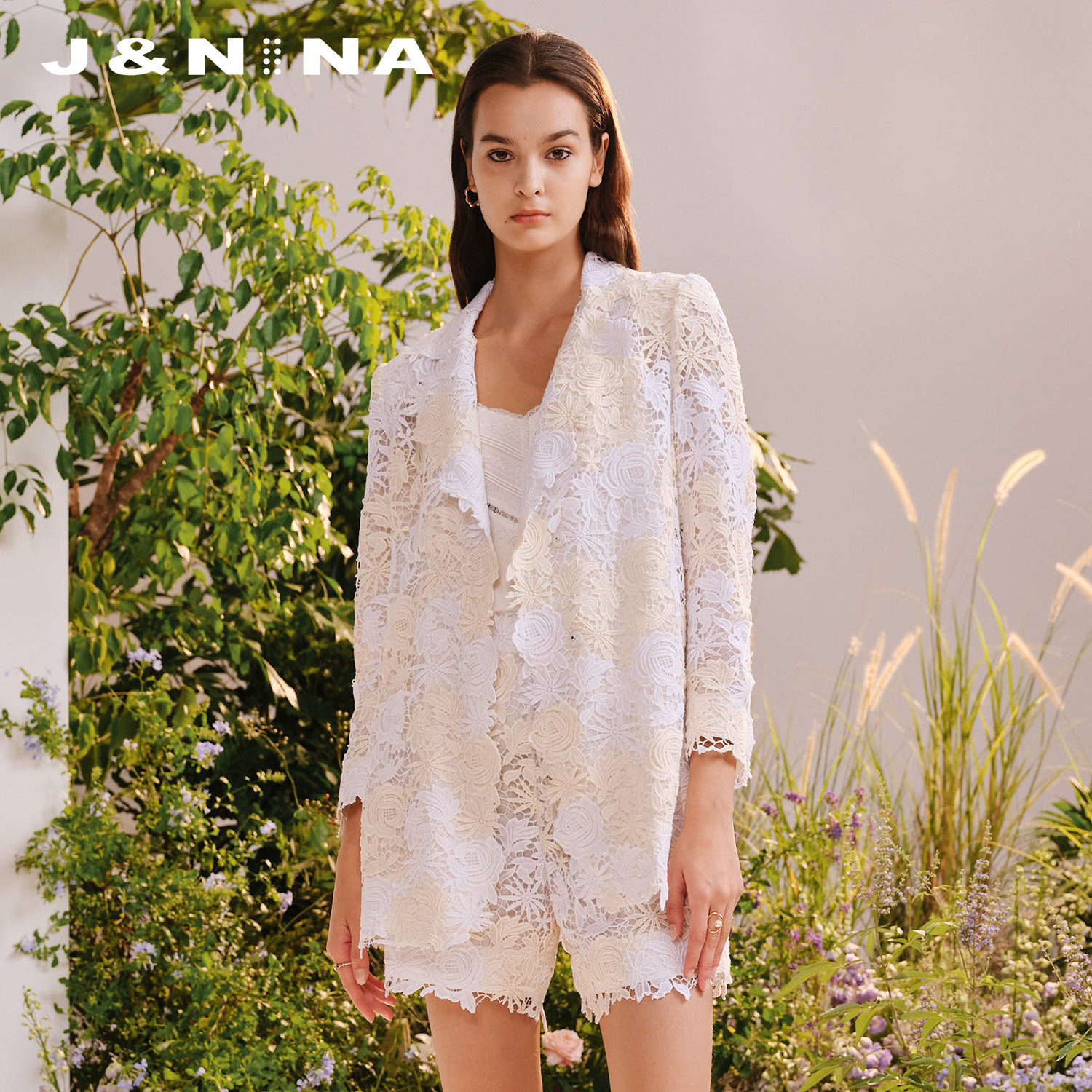 J&NINA法式镂空蕾丝开衫外套罩衫原创高品质剪花设计感上衣衬衫