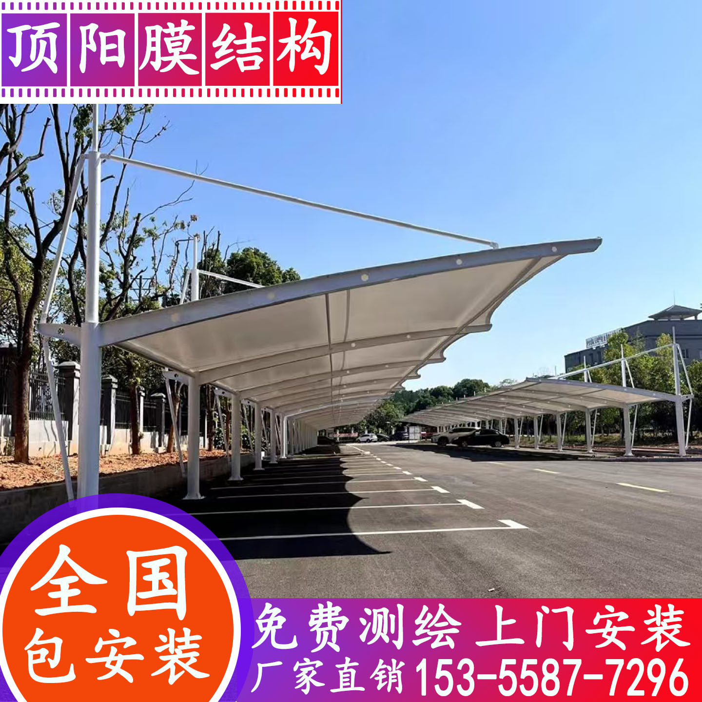 钢膜结构停车棚汽车棚小区充电桩棚景观棚张拉膜篮球场体育看台棚