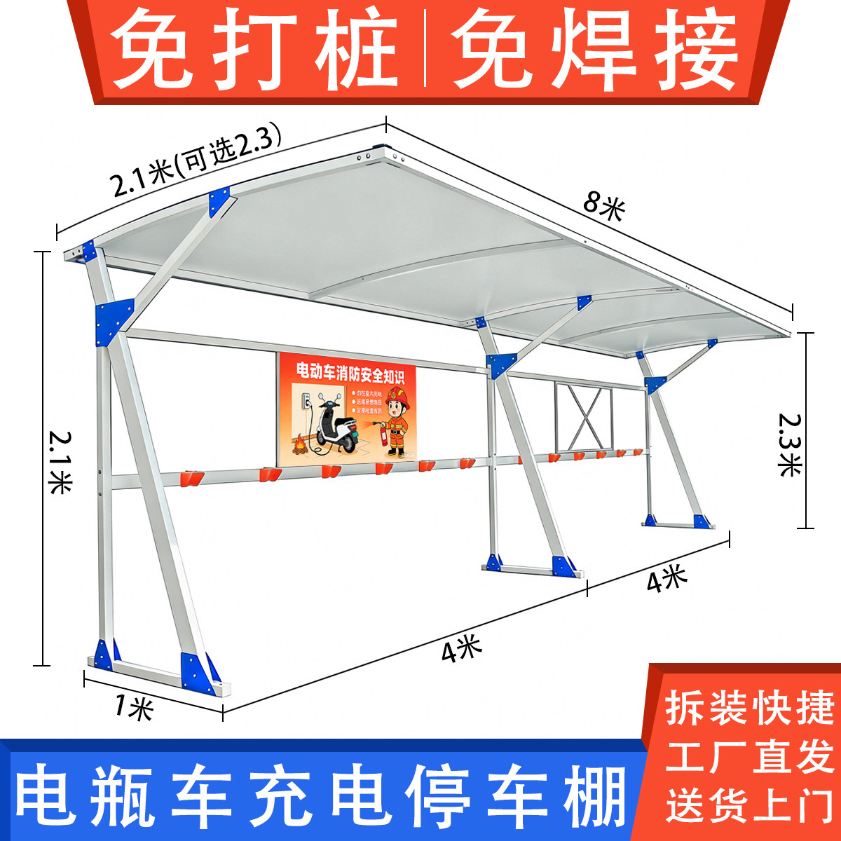 铝合金车棚停车棚汽车户外小区室外遮阳棚充电桩自行车电动车雨棚