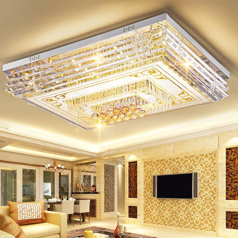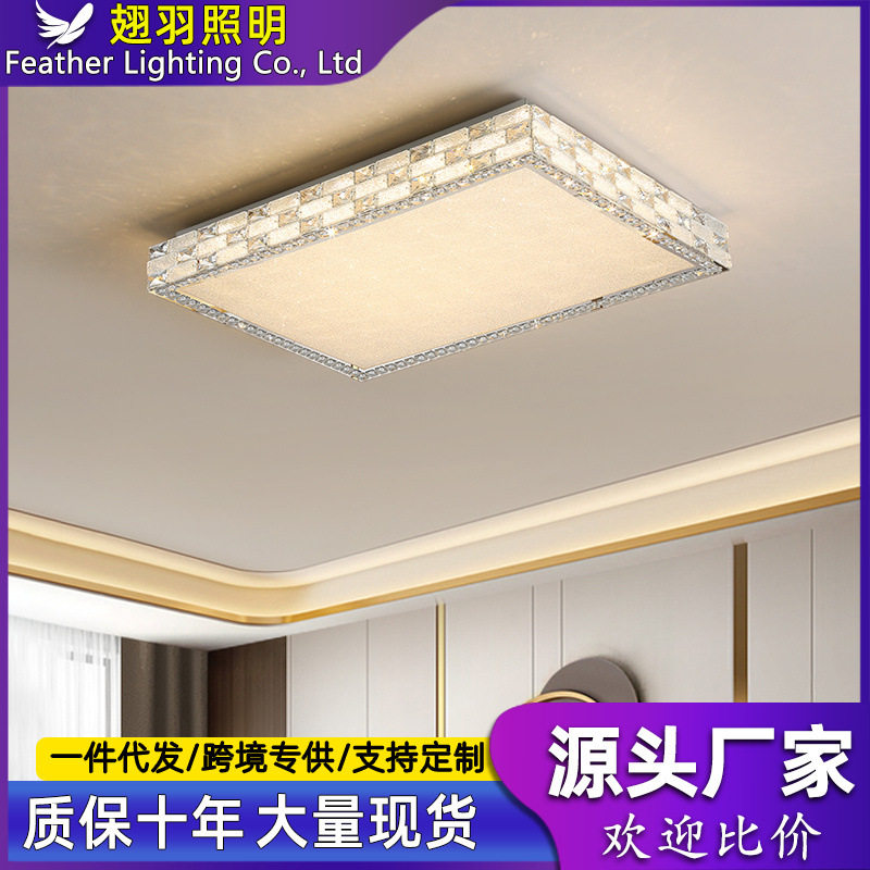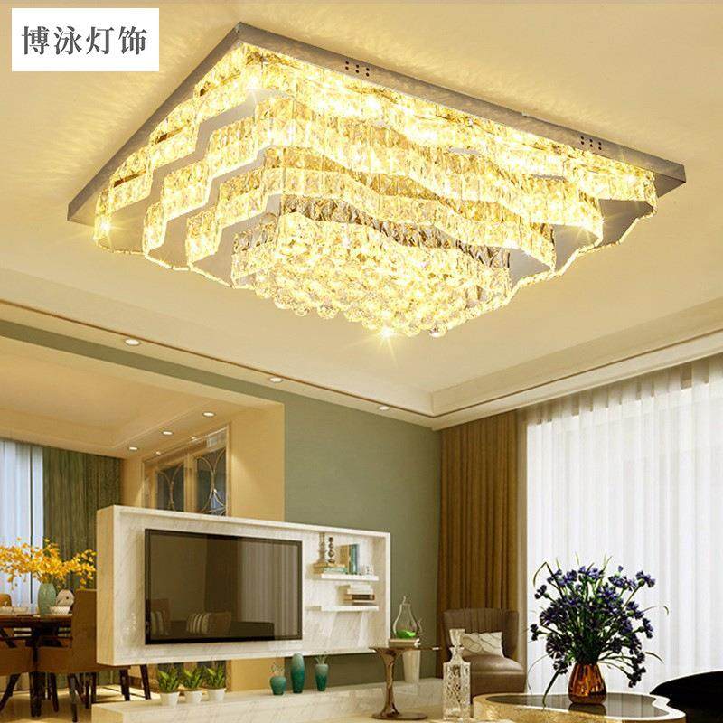 LED客厅吸顶灯具长方形水晶灯饰主卧室大厅房间餐厅大气现代简约