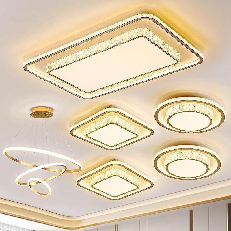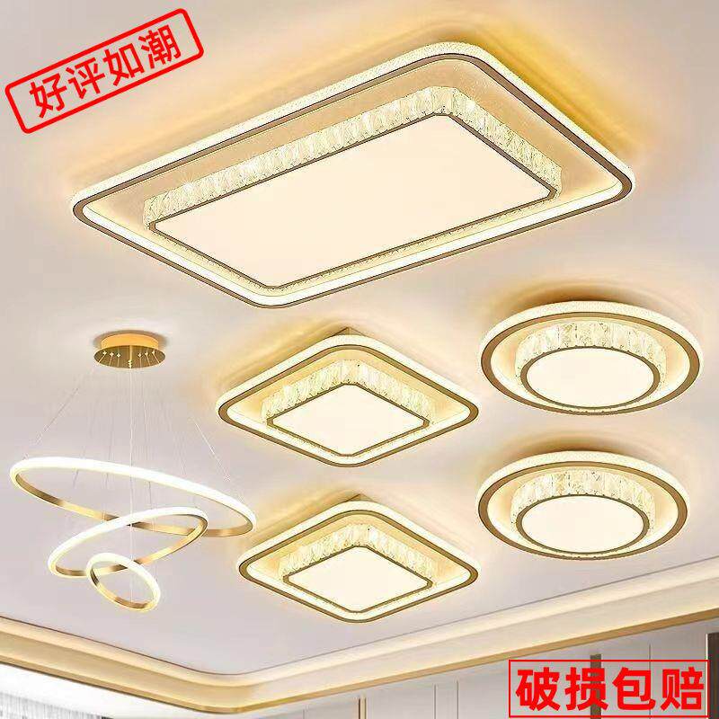 包安装LED客厅吸顶灯水晶长方形大气轻奢简约卧室灯餐厅全套灯具