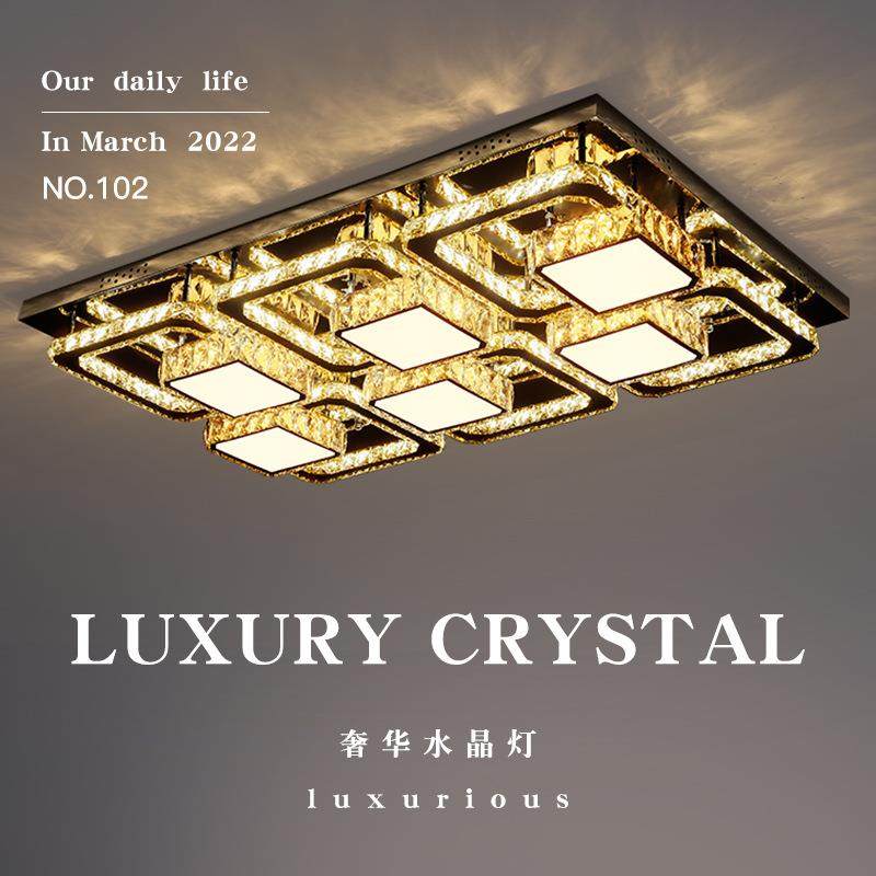 免费安装新款轻奢风高档水晶客厅灯长方形大气卧室灯餐厅灯吸顶灯