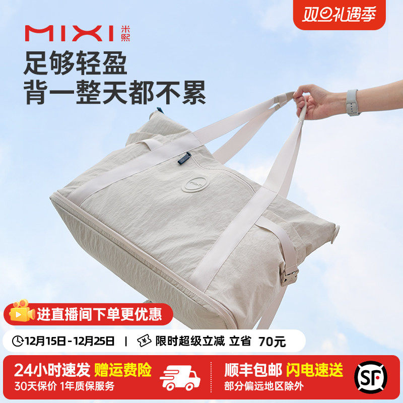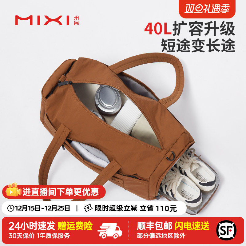 米熙大容量旅行包女轻便手提斜挎运动健身包短途旅游收纳行李袋男