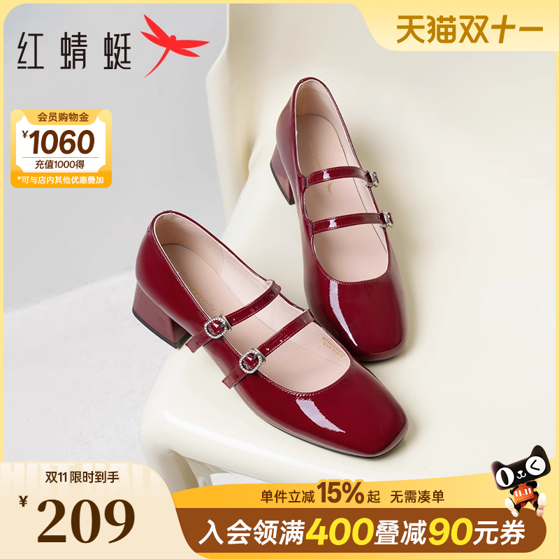 红蜻蜓红色高跟鞋2025新款女鞋粗跟单鞋婚鞋新娘鞋法式绝美玛丽珍