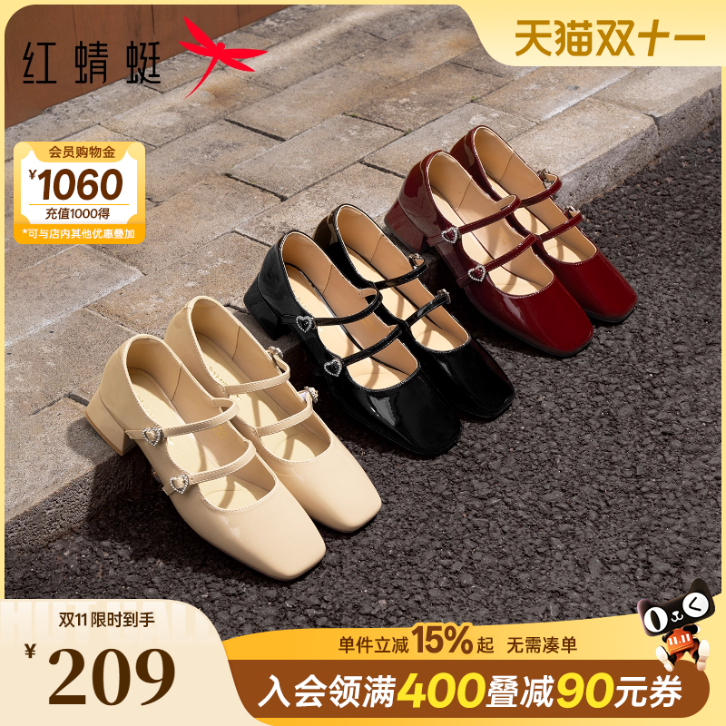 红蜻蜓红色玛丽珍高跟鞋2025新款女鞋皮鞋粗跟单鞋法式婚鞋新娘鞋