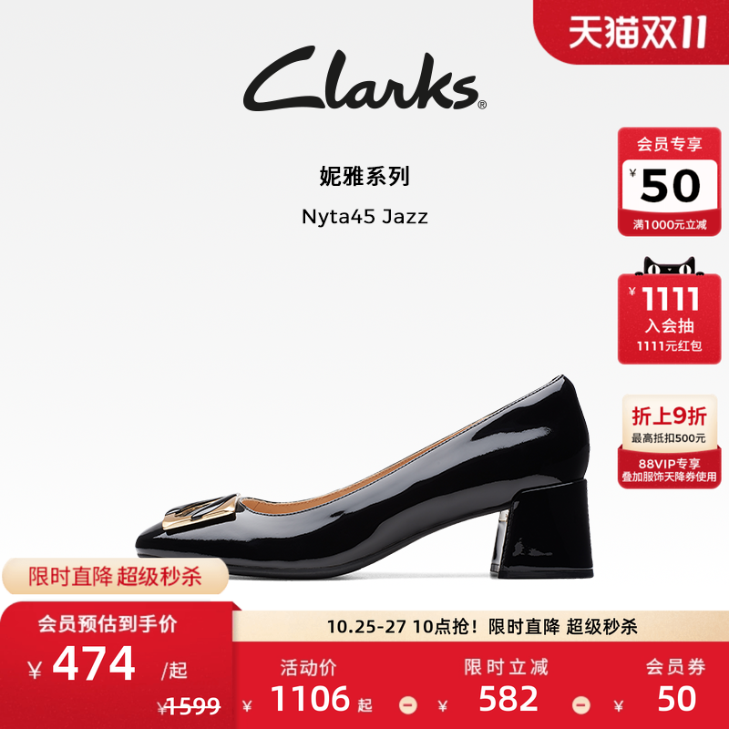 Clarks其乐Nyta45 Jazz女鞋秋季复古红色高跟鞋浅口方头粗跟皮鞋
