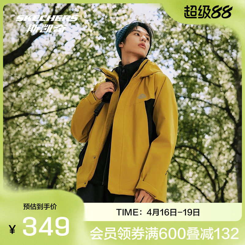 斯凯奇官方outlet男款三合一冲锋衣科技面料透气防水摇粒绒外套