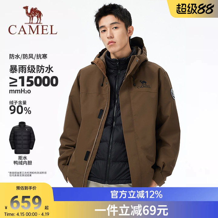 骆驼男装冲锋衣男户外夹克外套三合一三防羽绒内胆徒步登山透气冬