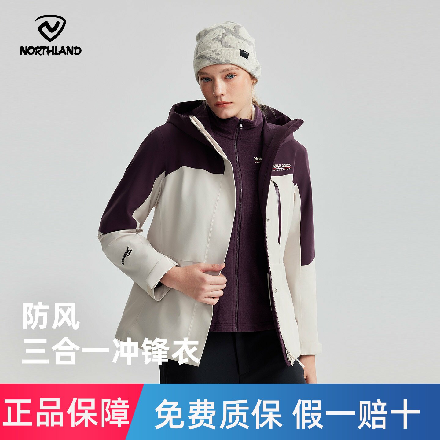 NORTHLAND诺诗兰三合一冲锋衣户外登山服徒步运动旅行防风透气