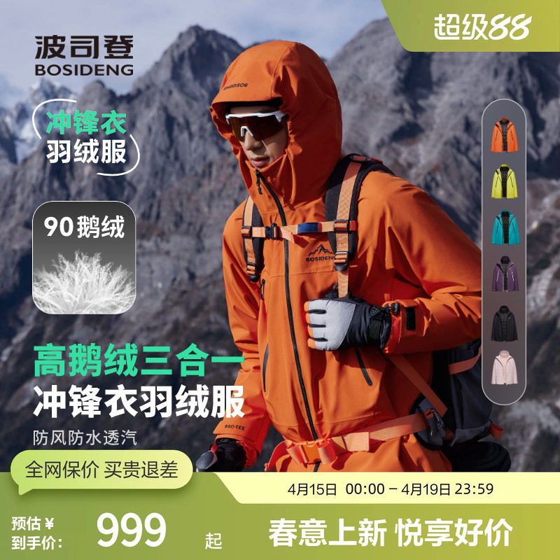 【鹅绒】波司登冬款短款户外三合一防风防水透气冲锋衣轻薄羽绒服