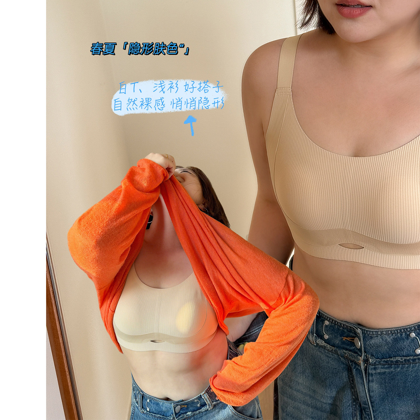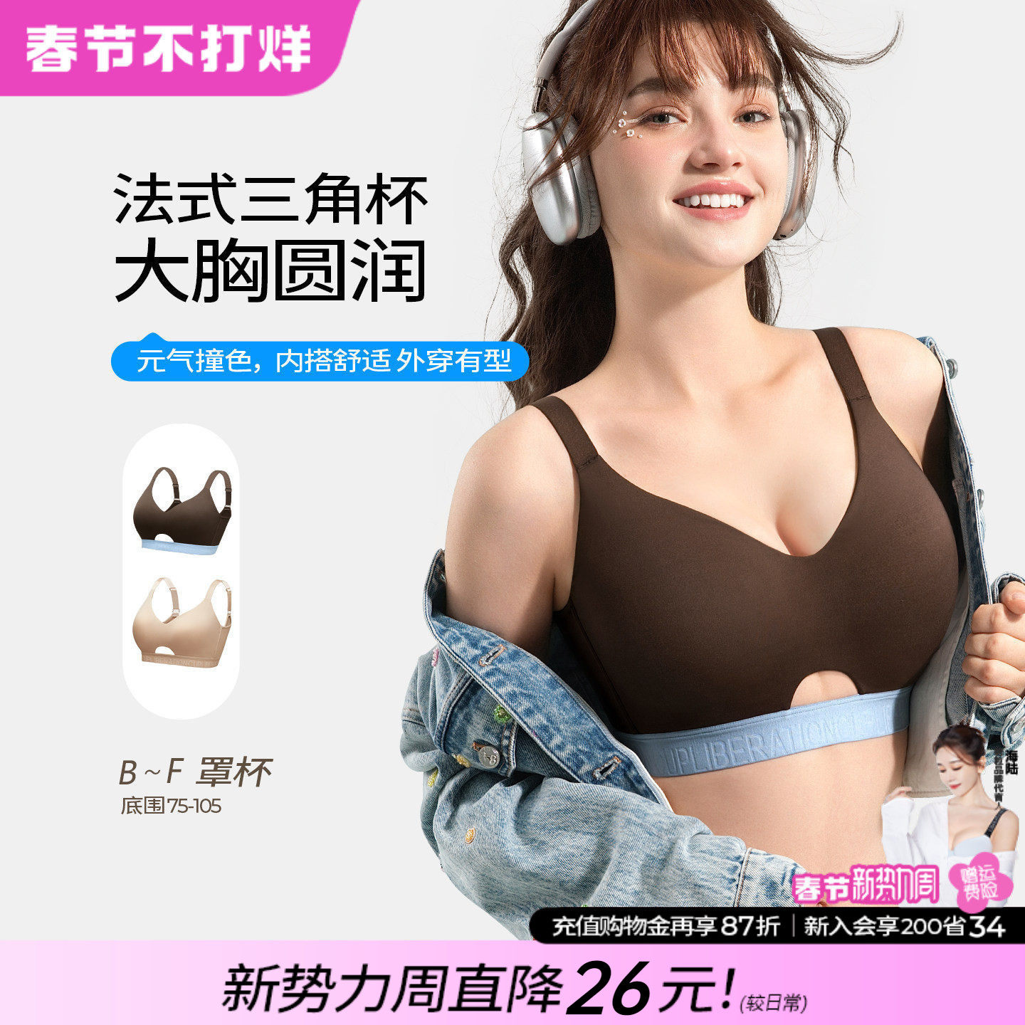 糖粒无痕大胸显小内衣收副乳防下垂轻运动大码胖mm无钢圈文胸罩薄