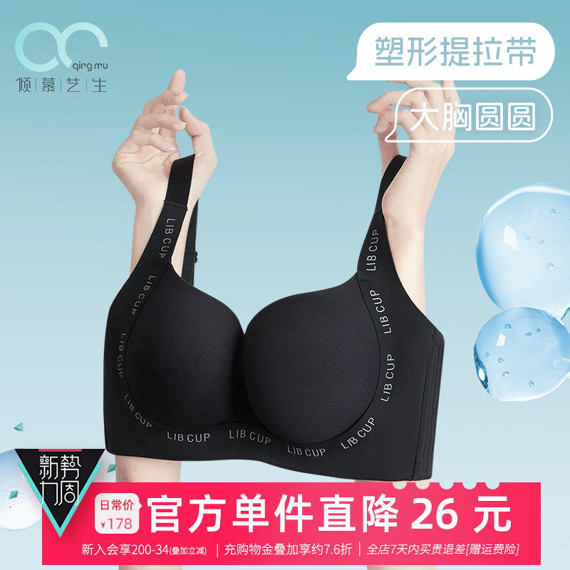 糖粒无痕内衣大胸显小大码胖mm聚拢上托收副乳调整型有钢圈文胸罩