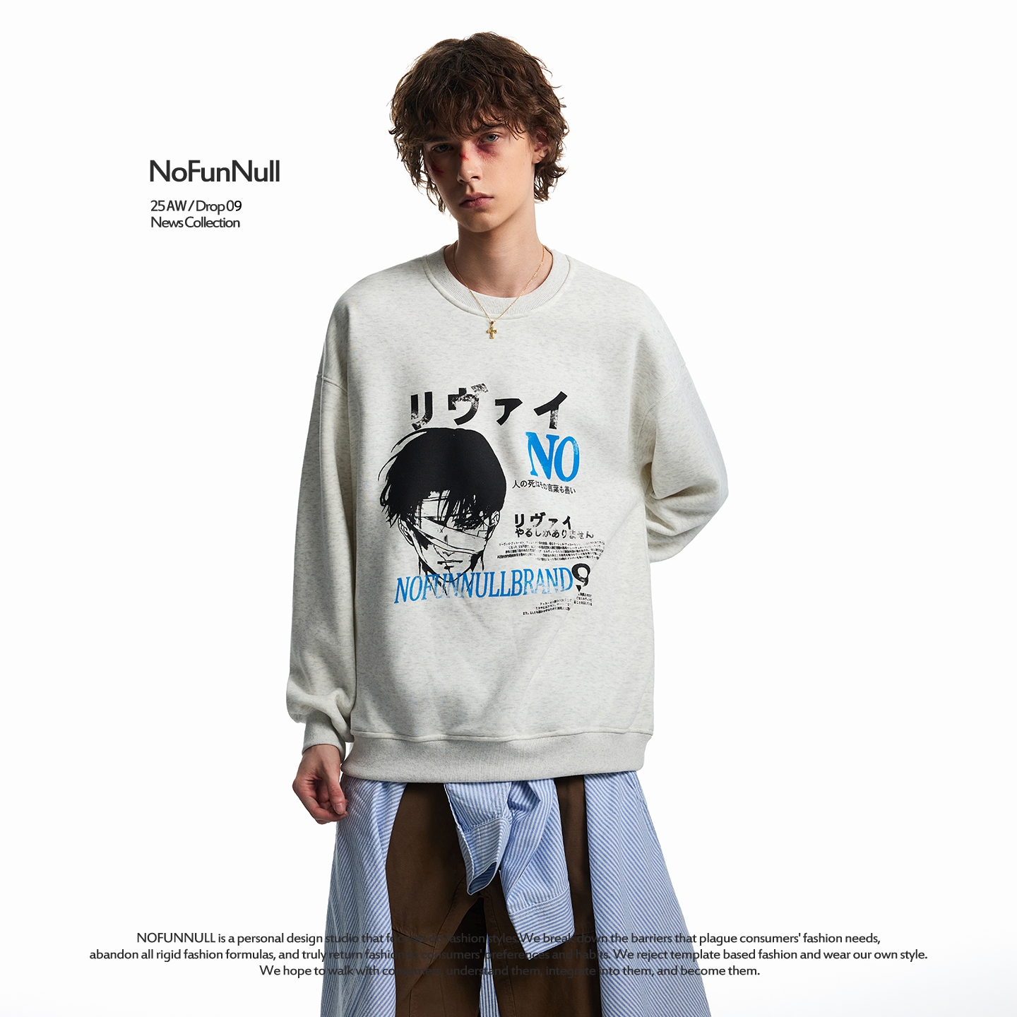 NOFUNNULL 400g日式动漫印花套头卫衣男秋季cleanfit复古宽松长袖