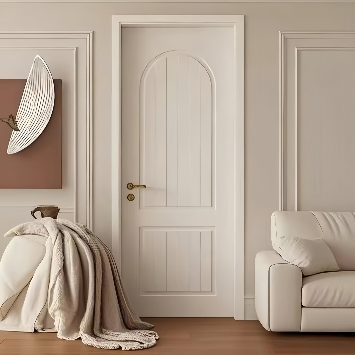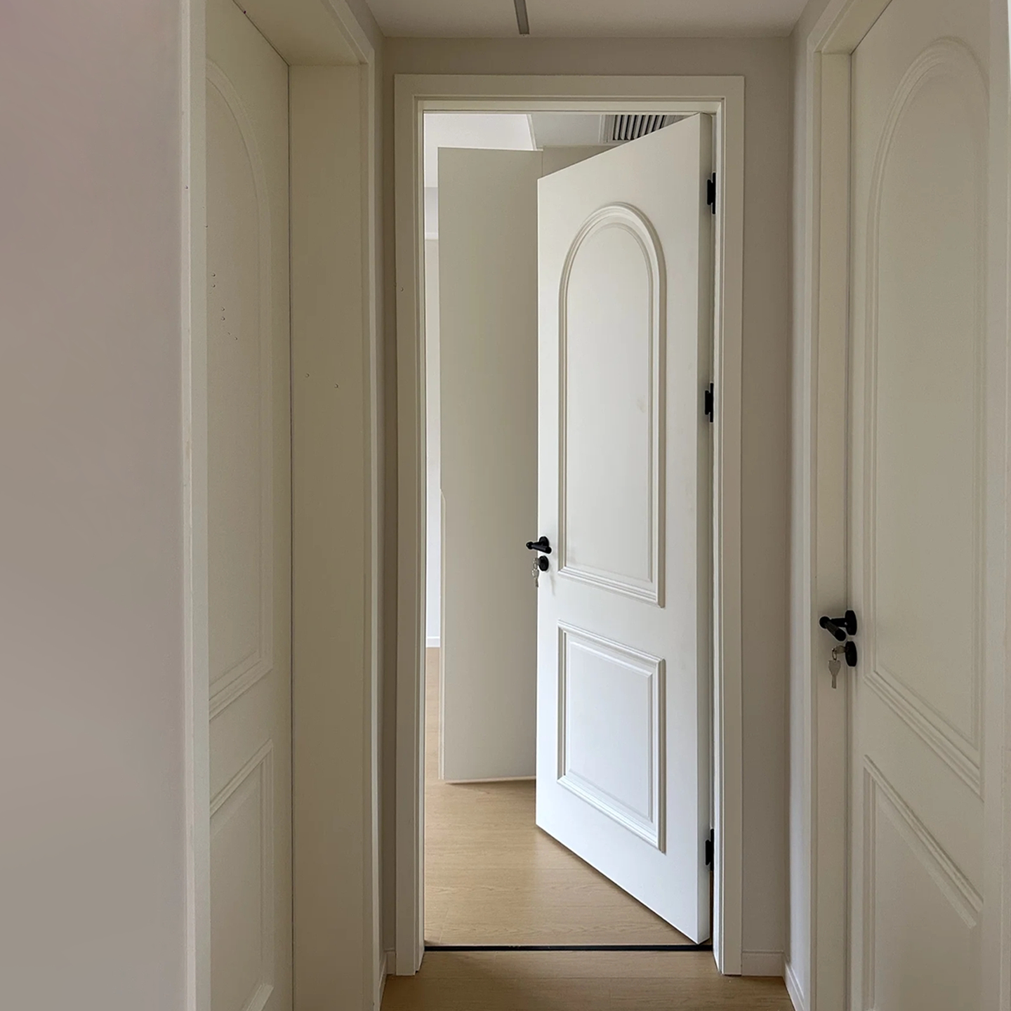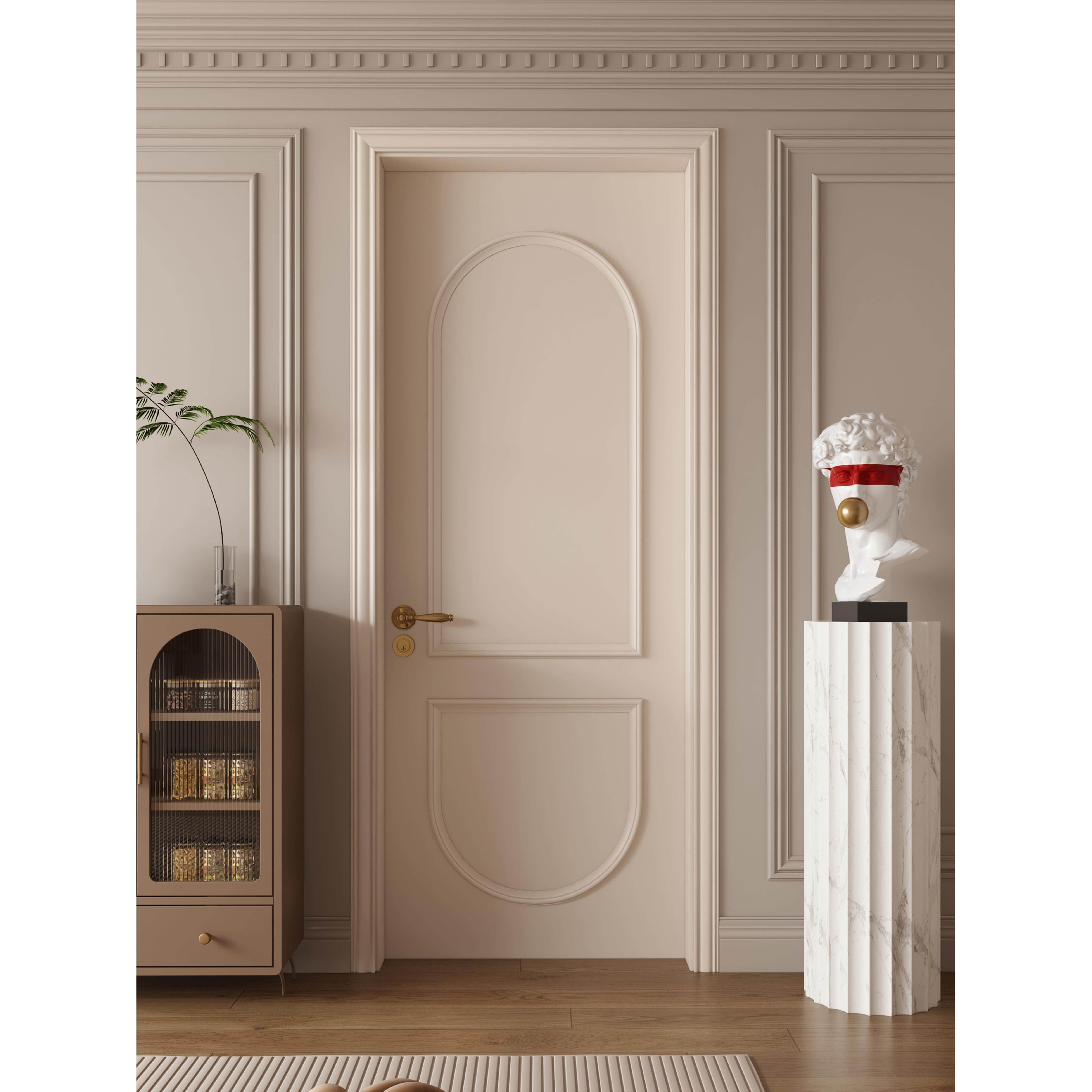木以森居轻法式覆古实木房间门烤漆卧室门白色弧形扣线平开室内门