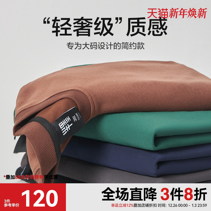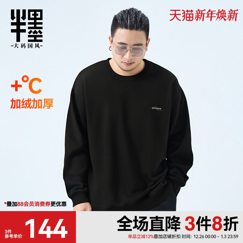 半墨大码男装卫衣男圆领冬季新款加绒简约加肥加大潮胖子套头外套