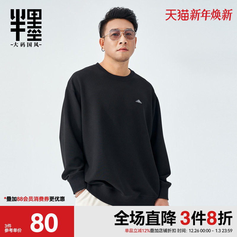 半墨大码男装华夫格卫衣男宽松圆领打底衫加肥加大肥佬秋季外套潮