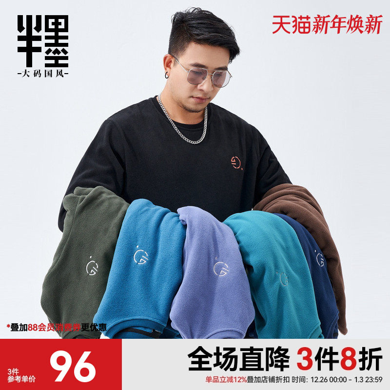 半墨大码男装加肥加大外套宽松打底休闲胖子圆领摇粒绒卫衣男加厚