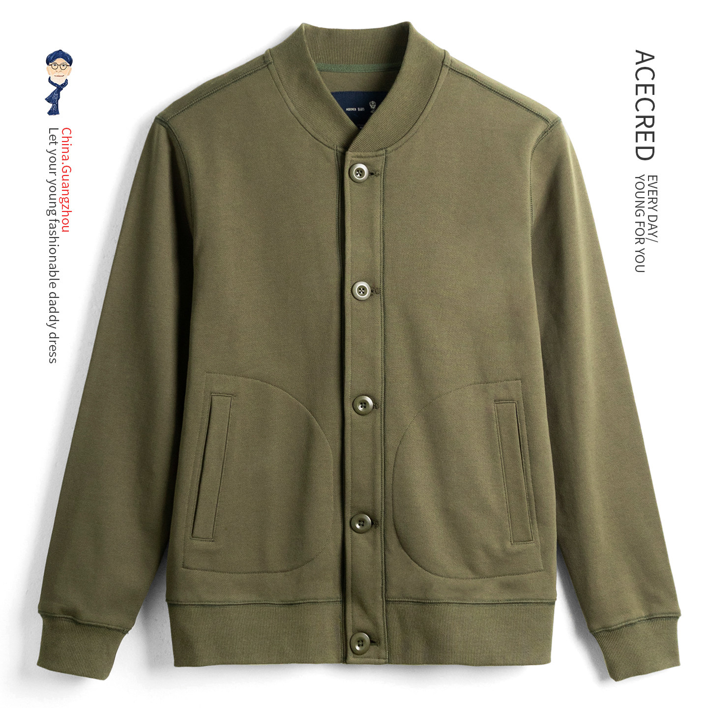 爸爸秋装卫衣纯棉男装中老年大码宽松棒球领外套老人爷爷春秋衣服