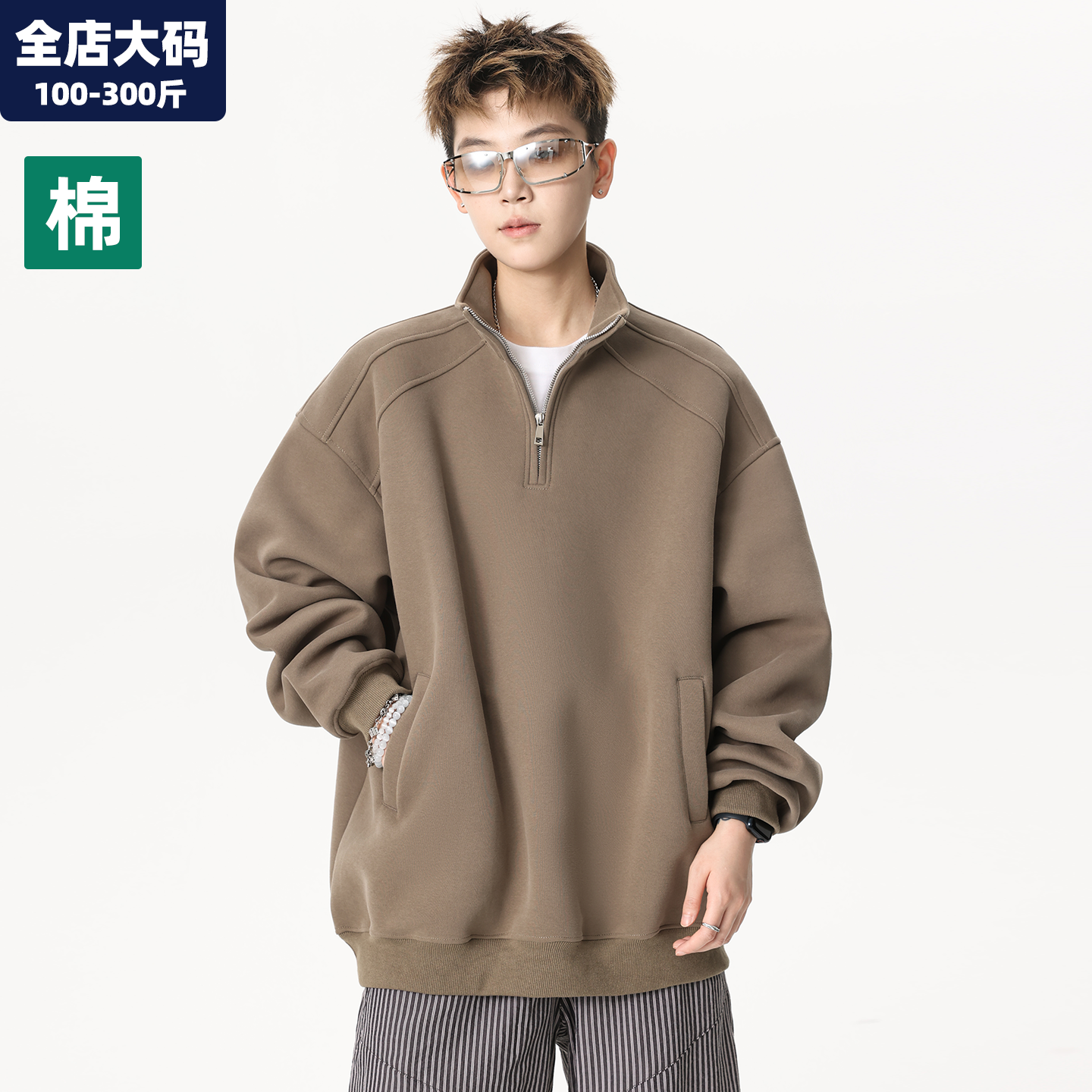 半墨大码男装半拉链卫衣男士秋季新款宽松加肥加大胖子长袖外套潮