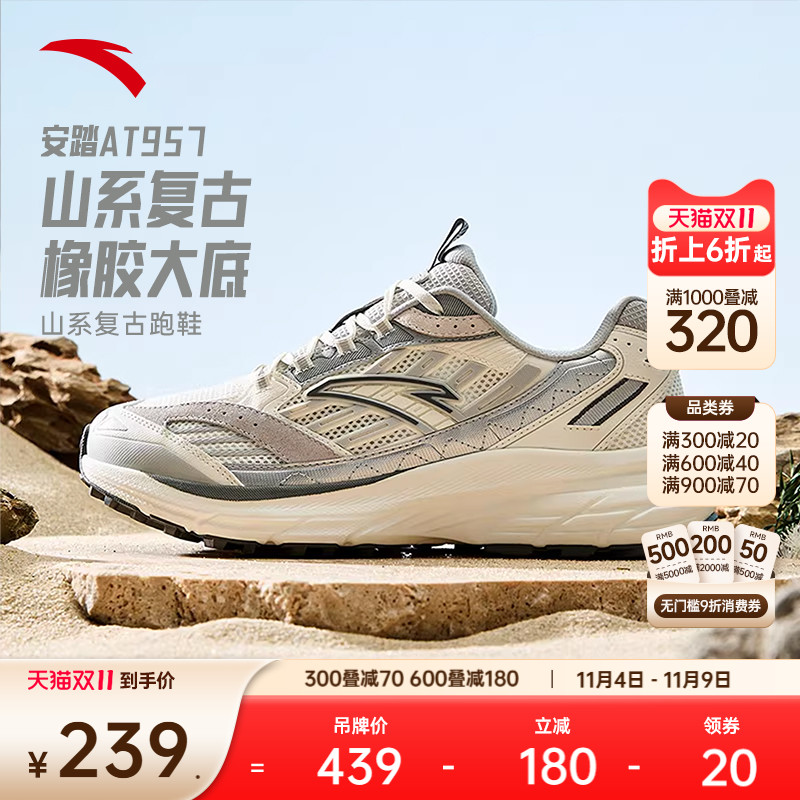 安踏AT957丨复古跑步鞋山系冬季透气情侣运动鞋休闲百搭男女鞋