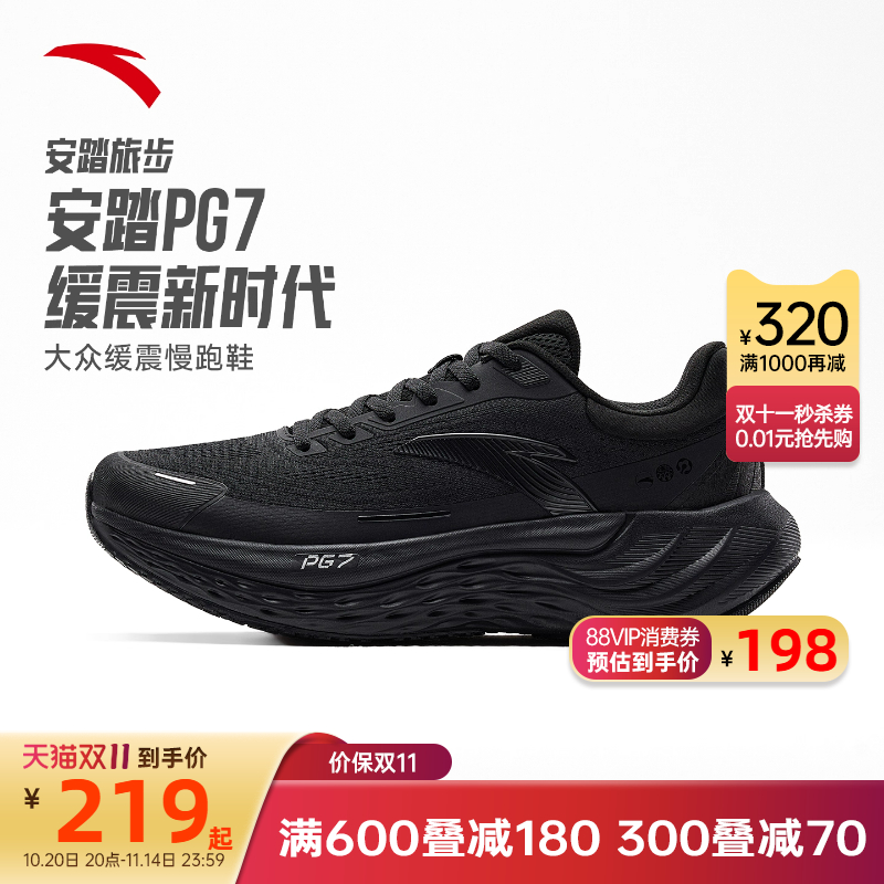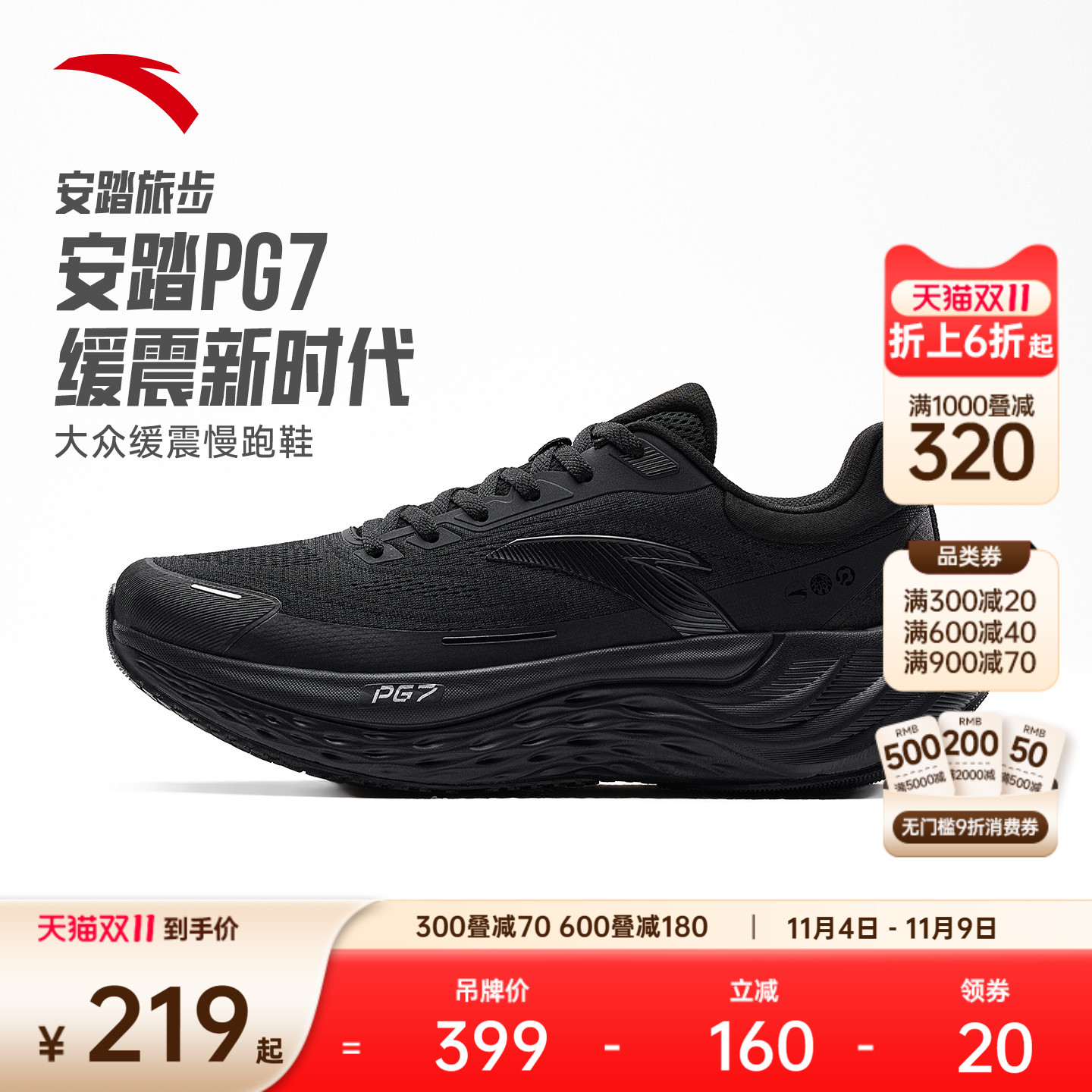 安踏PG7 旅步丨缓震慢跑步鞋男耐磨跳绳鞋厚底舒适运动鞋回弹跑鞋