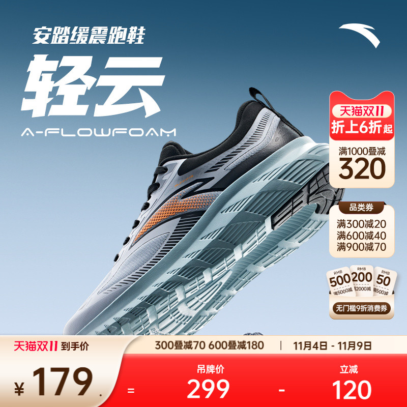 安踏轻云丨轻质缓震跑步鞋男冬季舒适轻便通勤慢跑运动鞋软底男鞋