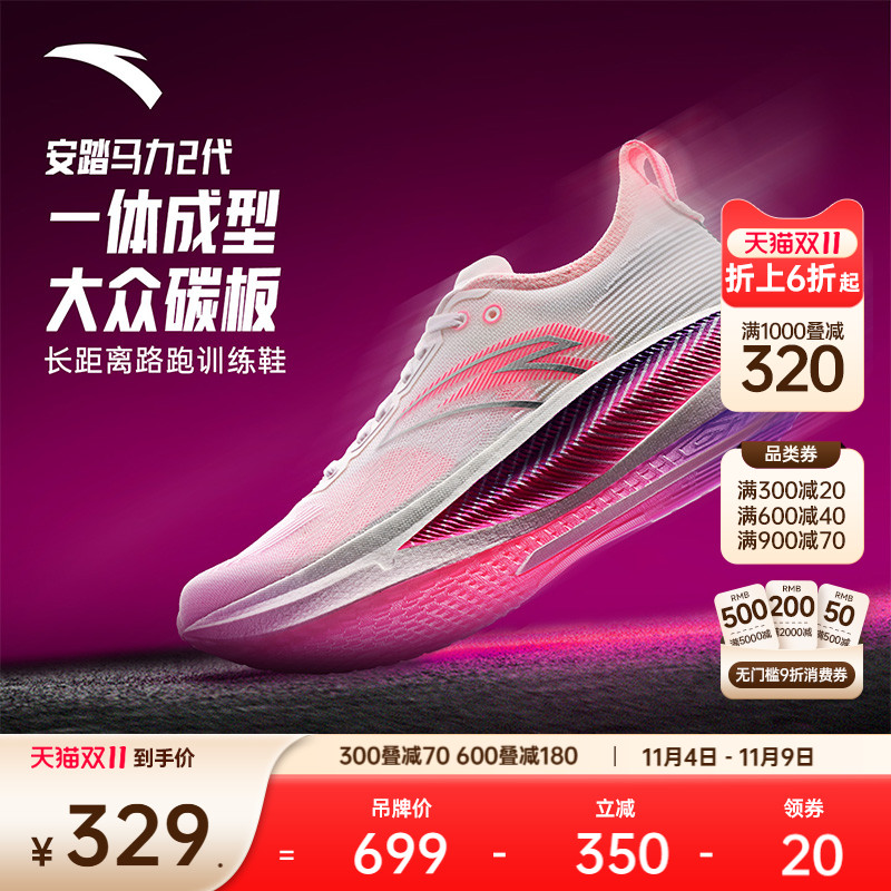 安踏马力2丨全掌碳板专业马拉松跑步鞋男竞速训练跑鞋轻质运动鞋