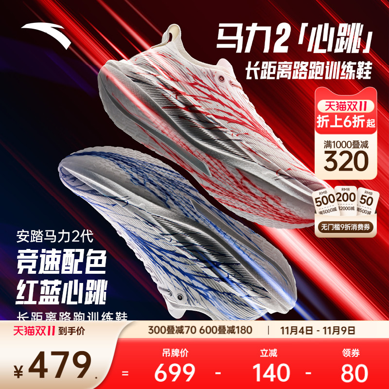 安踏马力2红蓝心跳丨长距离马拉松碳板竞速跑步鞋男子缓震运动鞋