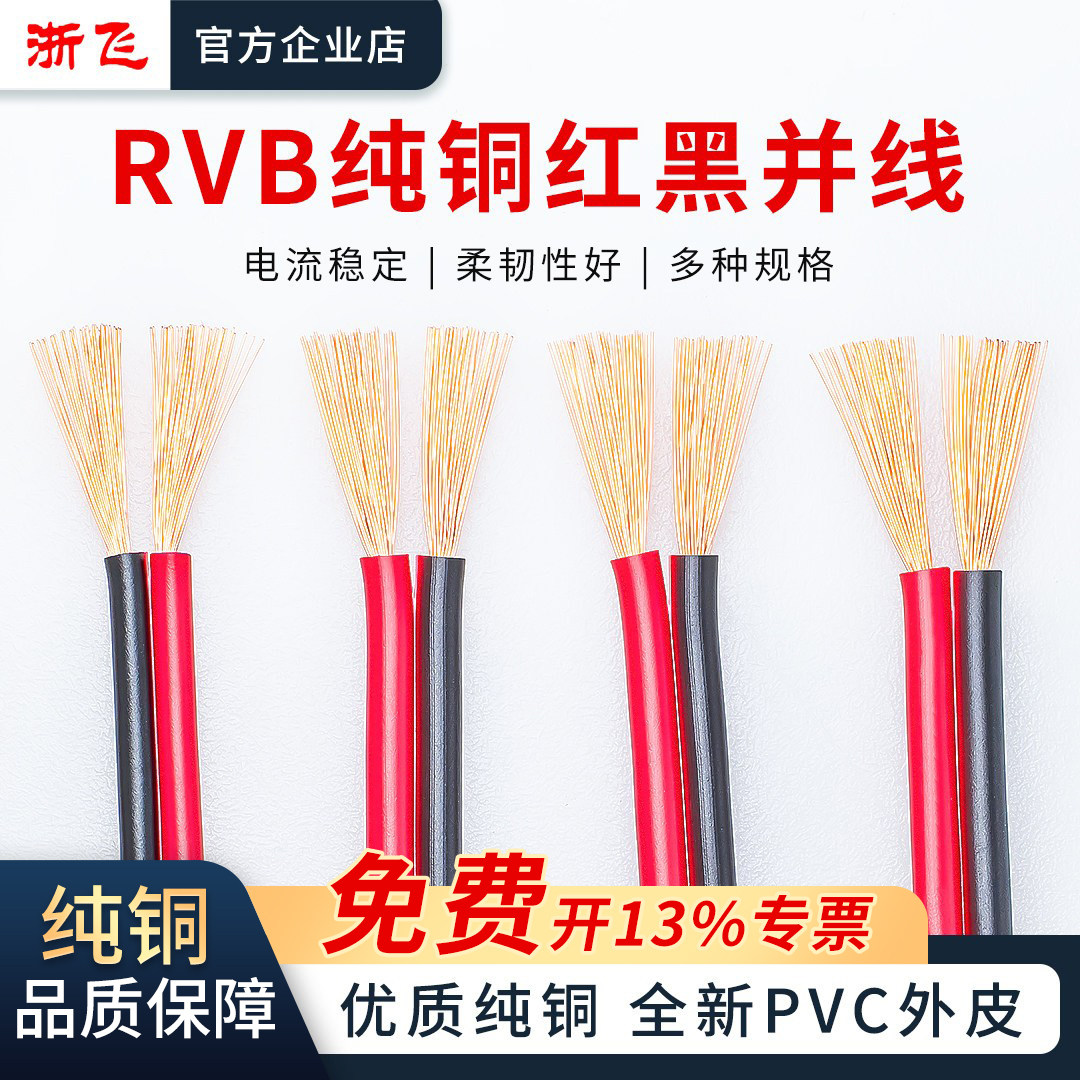 RVB红黑线并线纯铜电源监控线2芯喇叭线0.5 0.75 1.0 1.5 2.5平方