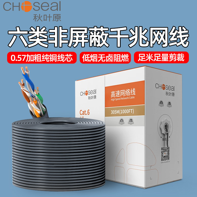 秋叶原六类非屏蔽千兆网线cat6类线家装预埋用超5类工程POE监控线