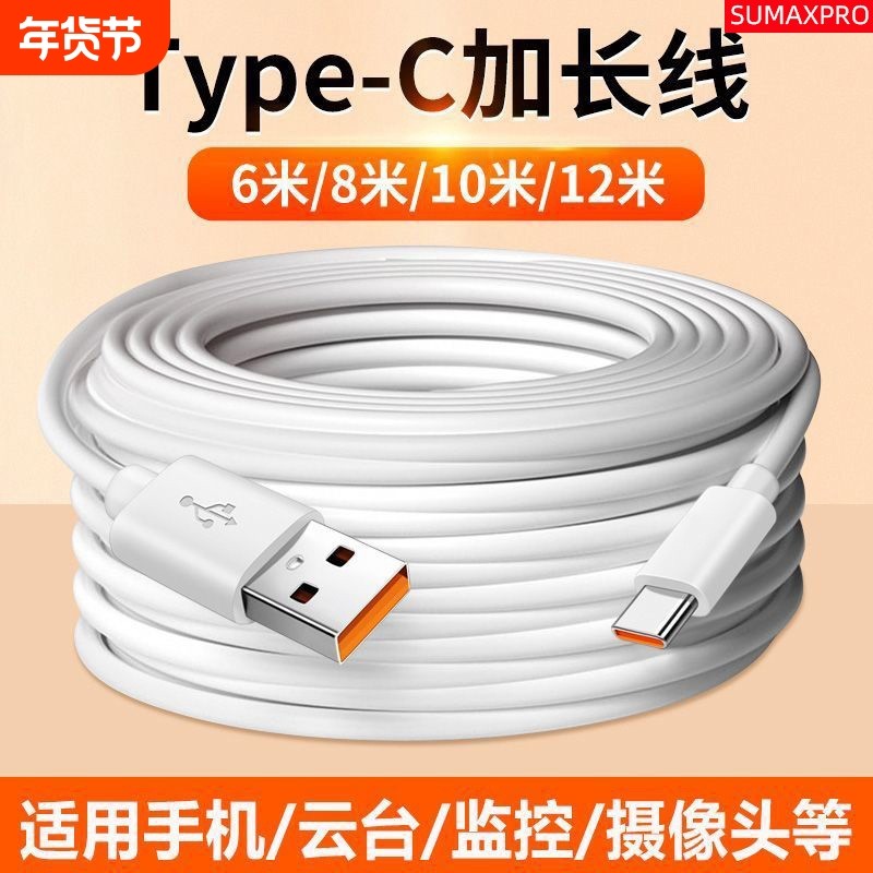 绿联加长款数据线3米2米通适用华为小米萤石安卓usb转typec摄像头监控超延长手机车载tpyec超级快充电线器6A5