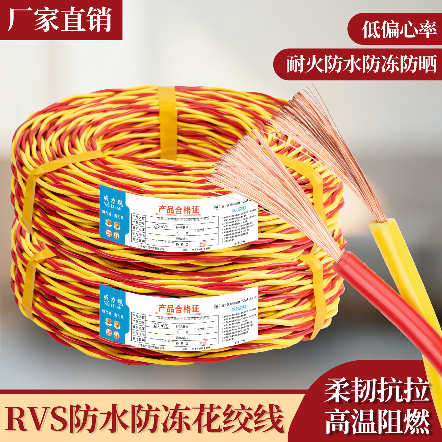 RVV电源线国标2芯3芯1.52.546平方三相电缆监控护套线家用防水