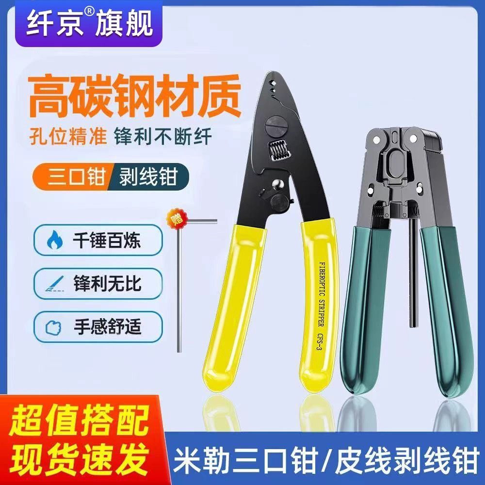 光纤剥纤钳三口米勒钳双口CFS3扒线剥涂层皮线光缆金属开剥器套装
