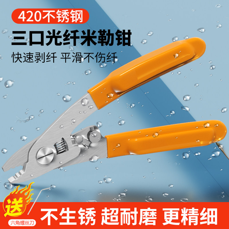 光纤米勒钳光纤剥线钳三口剥纤钳皮线开剥器弥勒钳冷接工具套装光纤切割刀光纤剥纤钳涂覆层剥离钳三口米勒钳