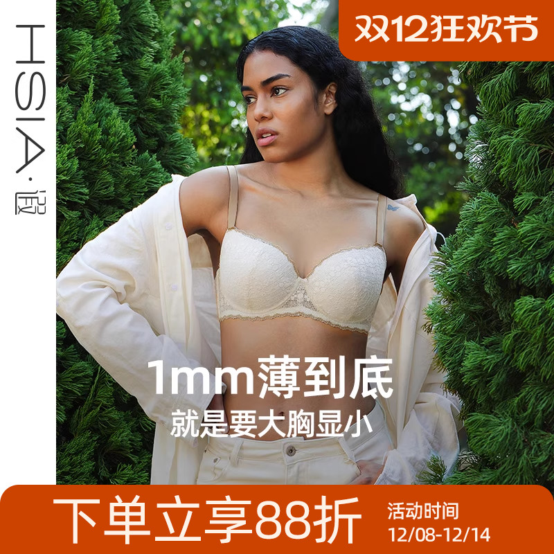 【小花漾】遐1mm超薄全罩杯蕾丝内衣女大码防下垂大胸显小文胸罩
