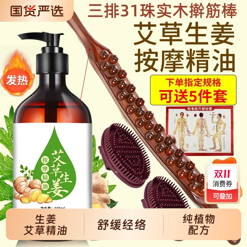 生姜艾草按摩精油全身通经络发热开背推拿刮痧身体正品官方旗舰店