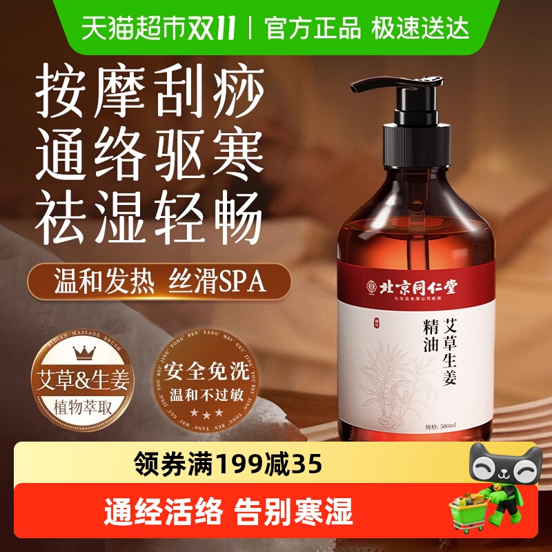 北京同仁堂生姜艾草舒缓按摩精油全身通经络发热刮痧免洗情侣推拿