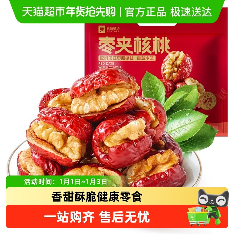 良品铺子红枣夹核桃无添加夹心灰枣仁派新疆特产孕妇营养健康400g