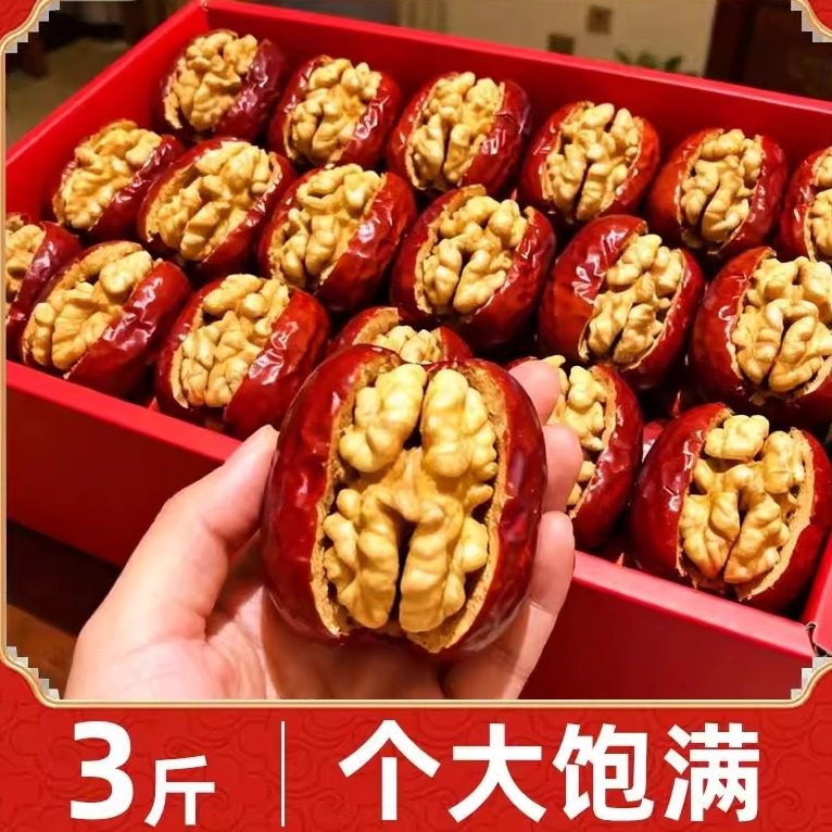 新疆特产红枣夹核桃仁包邮枣夹纸皮核桃抱抱果零食官方旗舰店特级