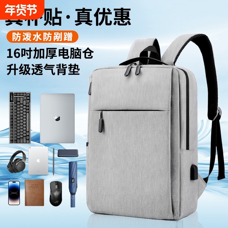 通勤电脑包双肩包男士16寸笔记本背包轻便大容量商务出差书包男款