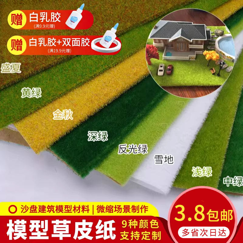 diy手工制作沙盘模型微缩仿真场景景观造景材料绿草坪草地草皮纸