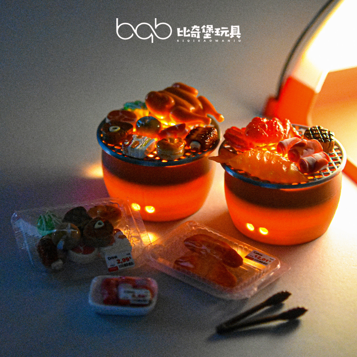迷你烧烤炭炉微缩仿真烤肉海鲜食物模型场景小摆件食玩过家家玩具
