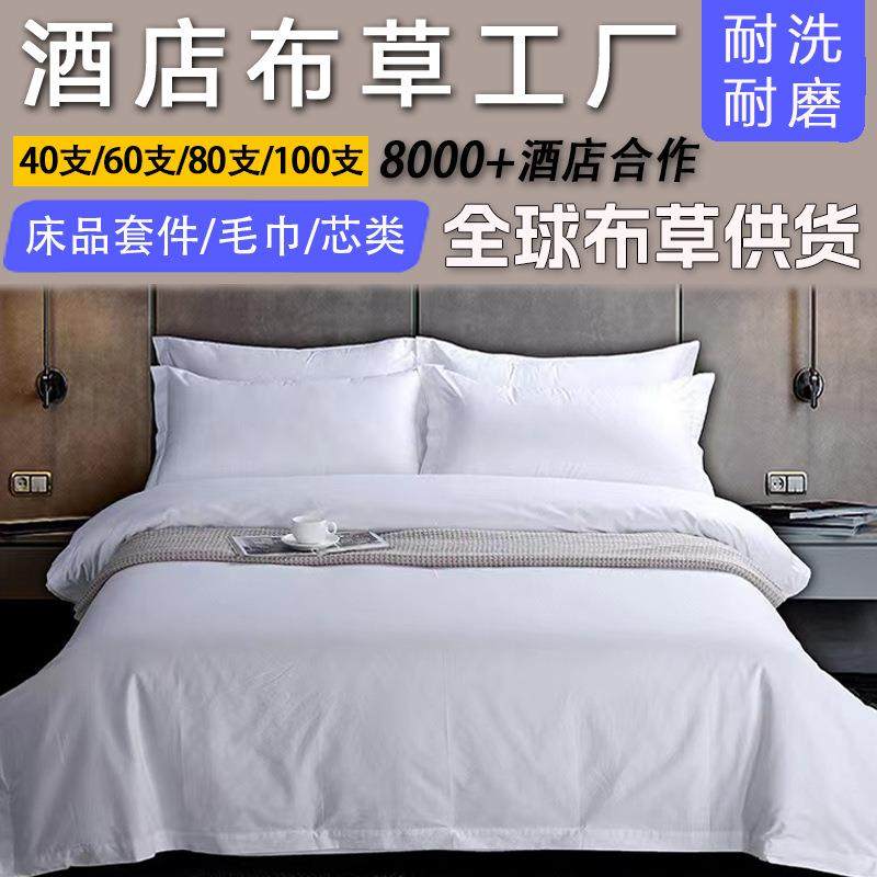 五星级酒店床品四件套60全棉宾馆床上用品纯白色民宿纯棉布草专用